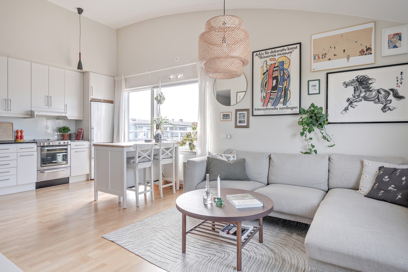 Välkommen till en modern och välplanerad bostad där varje kvadratmeter används smart. Belägen högst upp i huset, med fönster i två väderstreck och en generös takhöjd, bjuder lägenheten på både ljus och rymd – perfekt för dig som söker ett hem med karaktär, komfort och ett lugnt läge nära stadens puls.