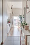 Redan i hallen möts du av en stilren interiör med ljusa väggar, praktisk klinker på golvet och gott om förvaring i fasta garderober. Härifrån nås det helkaklade badrummet – rymligt och fräscht med dusch, wc, handfat med kommod och tvätt- och torktumlare.