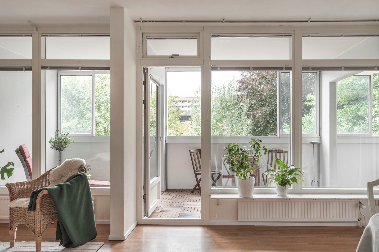 Smart planerad trea med inglasad balkong och perfekt pendlarläge