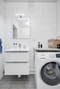 Bostaden har en modern, öppen planlösning som ger en luftig och rymlig känsla. Köket och vardagsrummet är smart sammanflätade, perfekt för både sociala tillställningar och lugnare kvällar. Köket är fullt utrustat med moderna vitvaror som inbyggd ugn och mikrovågsugn, spis, diskmaskin samt kyl och frys. De stilrena skåpen ger gott om förvaringsutrymme och skapar en harmonisk miljö.