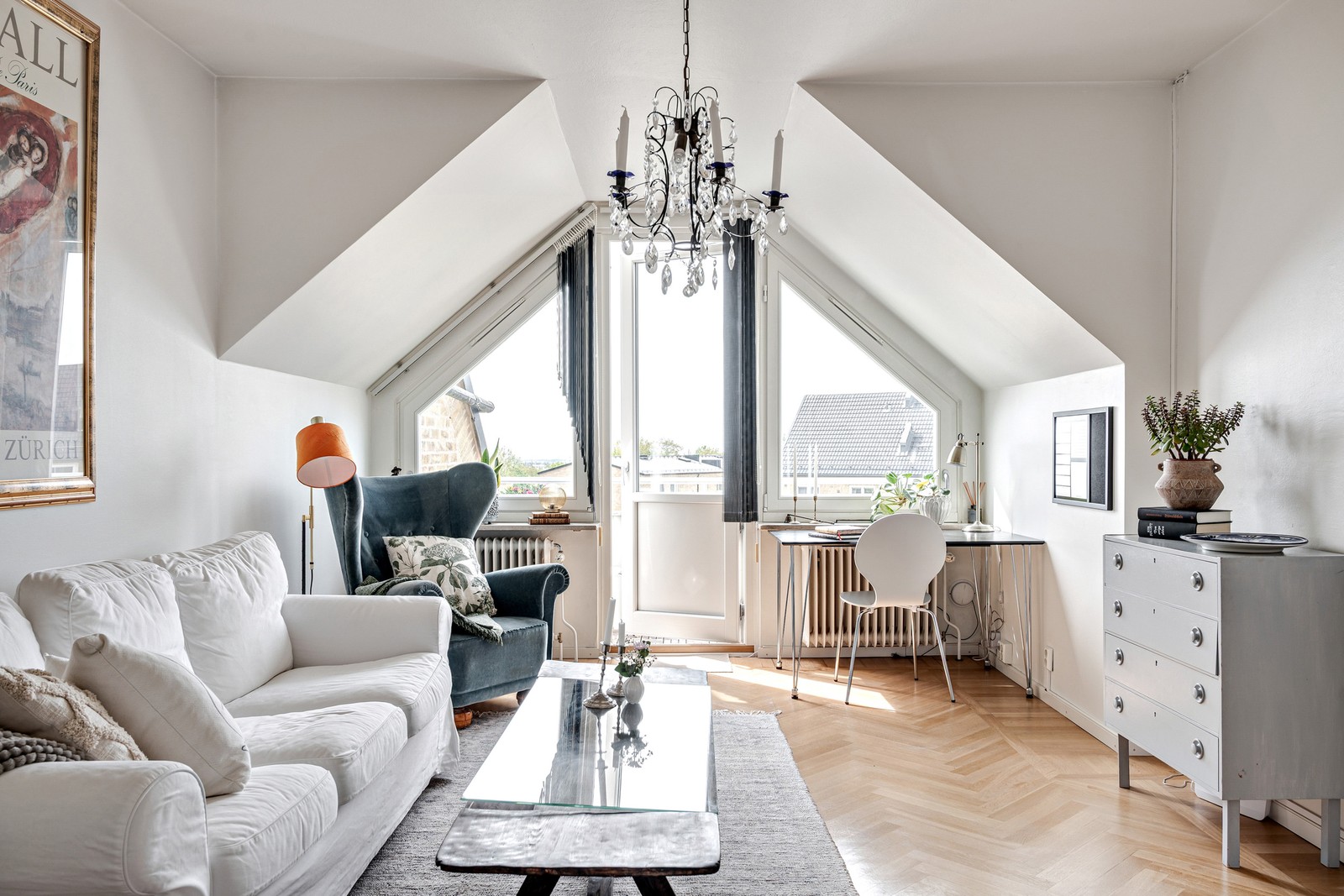 Ljus och charmig 1:a högst upp i huset med västerbalkong och slående utsikt