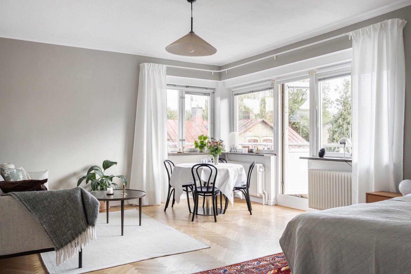 Inbjudande etta med magiskt ljusinsläpp och stor balkong