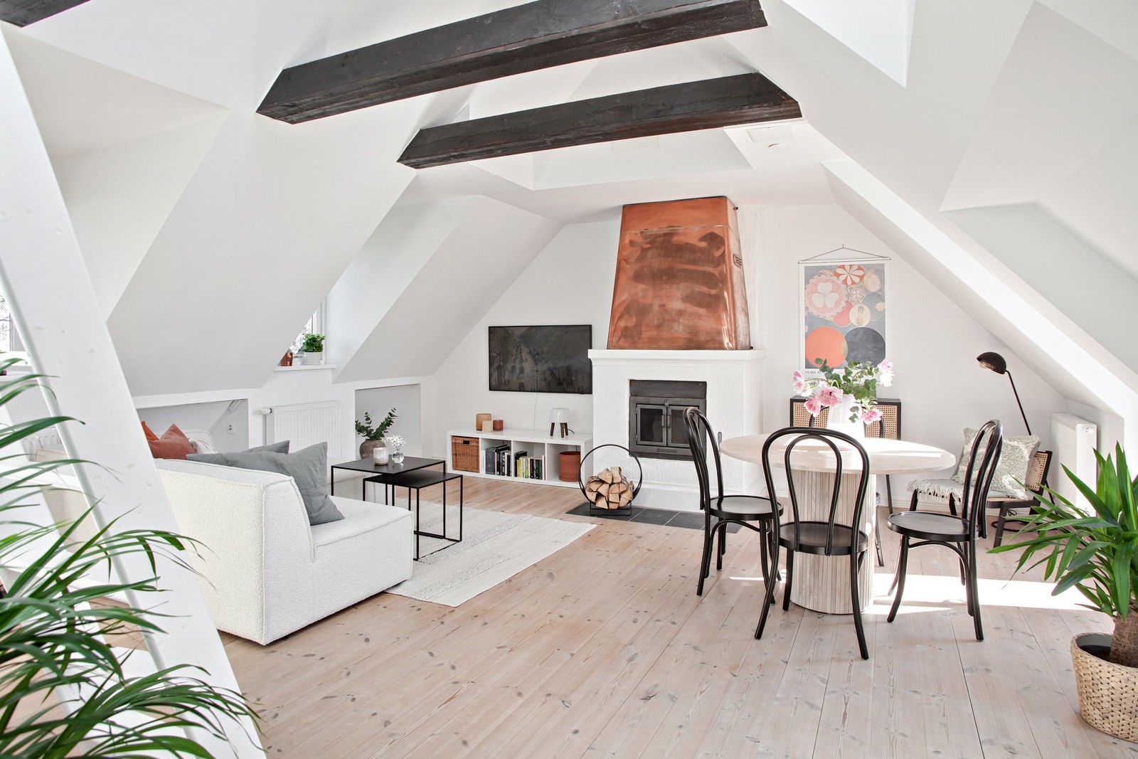 Unik vindsvåning på toppläge med braskamin, nytt kök och balkong