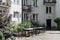 Vacker och arkitektritad innergård med tillgång till gemensamma utemöbler. Miljöstation finns på gården.