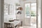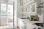 Direkt till höger finner vi ett nyligen renoverat köket med gott om förvaringsutrymmen och ett stort skafferi. Köksinredningen är delvis i original där den övre skåpinredningen är i originalutförande och mycket tidsenlig. Ljus bänkskiva i laminat med nedsänkt diskvask passar fint ihop med det vita kaklet ovan diskbänken. Väggarna är målade. Här finns matplats för 4 personer och utgång till härlig balkong i västerläge. Mellan hallen och köket finns en tidstrogen och mycket karaktäristisk serveringsgång där originalinredningen sparats.