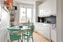 Det ljusa och trivsamma köket har vita skåpluckor och ett bevarat skafferi som ger gott om förvaringsmöjligheter. Här finns plats för ett matbord för 2-4 personer med utsikt över den grönskande omgivningen. Köket är utrustat med diskmaskin, kyl/frys, spis och mikrovågsugn.