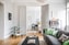 med fiskbensparkett och ljusgrå väggar. Högt i tak och höga golvsocklar samt lamprosett i tak. Stora fönsterpartier med ett fint ljusinsläpp och god plats för soffgruppen. Placerat i fil med sovrum och ljusgråa spegeldörrar i original intill sovrum.