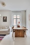 När du stiger in i bostaden möts du av en generös och välkomnande hall med utmärkt plats för avhängning. Det vackra parkettgolvet sätter tonen för resten av hemmet och ger ett väldigt elegant första intryck.