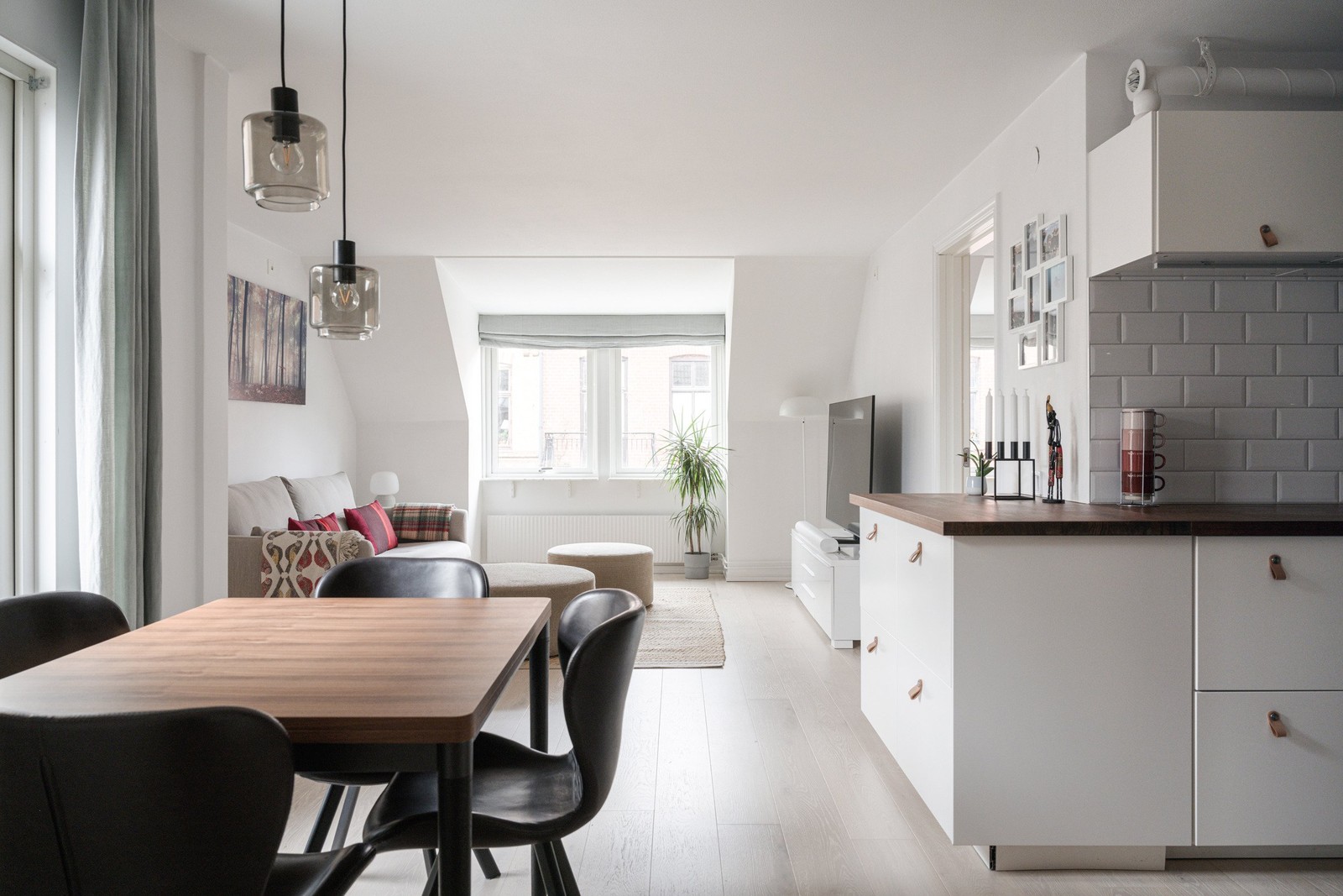 Mitt i staden. Högst upp i huset med hiss och bra skick
