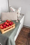 Ljust och fräscht kök som är utrustat med diskmaskin, mikrovågsugn, induktionshäll och ugn samt kombinerad kyl/frys.