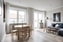 Det stora allrummet har en luftig känsla och erbjuder gott om plats för umgänge och avkoppling. Säljaren har på ett smart sätt delat av rummet med industriglas för att skapa ett trendigt och stilfullt sovrum, vilket adderar en modern touch till bostaden.