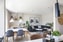 Vidare öppnar bostaden upp sig mot den sociala delen där kök och vardagsrum samspelar i en öppen och luftig planlösning. Köket är nyinstallerat från Ikea och utformat med stilrena, mörka luckor som möter ljusa bänkskivor. Den platsbyggda köksön blir hemmets naturliga samlingspunkt, utrustad med en kompositbänkskiva, induktionshäll och integrerad fläkt – perfekt för både vardagsmatlagning och sociala tillställningar. Samtliga vitvaror är nya och väl integrerade i designen.