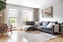 Vardagsrummet är rymligt med parkettgolv och målade väggar. Här finns gott om plats för soffgrupp och tv-möbel, och rummet präglas av ett fint ljusinsläpp som skapar en trivsam atmosfär.
