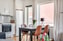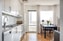 Köket är fräscht och luftigt med gott om förvaring och bänkyta. Skåpsluckorna är i vit färg och bänkskivan är i trä och har en grå färg. Stänkskyddet består av glas. Köket innehåller diskmaskin, kyl/frys, spis/ugn, fläkt och dubbel diskho. Köket är i öppen planlösning med vardagsrummet, vilket skapar en öppen och social yta. Väggarna ä vitmålade och golvet pryds av stilfull ekparkett. Rummet har gott om plats för både en generös soffgrupp, TV-möblemang samt matbord med stolar. Rummet är ljust med fönsterpartier i både väst och norr, och balkongen nås även härifrån genom en glasdörr. Balkongen är rymlig och är belägen i västerläge. Balkongen rymmer sittgrupp/matmöblemang om så önskas.