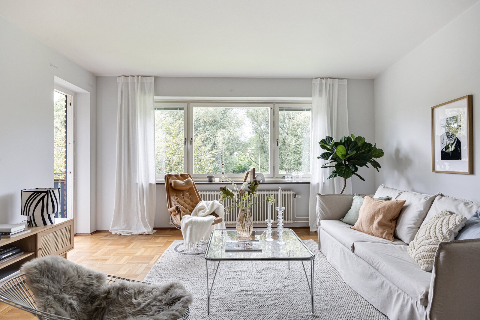 Ljus och rymlig 4:a om ca 89,8 m² med underbara sällskapsytor och balkong i väster. Modernitet möter härlig 50-talscharm i Hans Westman-ritat hus!