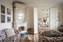 Direkt till höger finns den första av våningens många spegeldörrar med stiltroget trycke i svart. Här ligger den första av tre ljusa salonger i fil ut över trädgården och Finngatan. Det höga och fria läget över professorsstadens grönska och takåsar blir uppenbart direkt via den vackra fönstertriptyken. De tre högsmala fönsterpartierna är rundbågade med småspröjsade överfönster och djupa nischer. Under det höga taket ligger ett slipat plankgolv med höga fotlister och det blygsamma inslaget av snedtak ger rummet en lätt organisk och trivsam form. I takets mitt finns en stiltrogen takrosett.