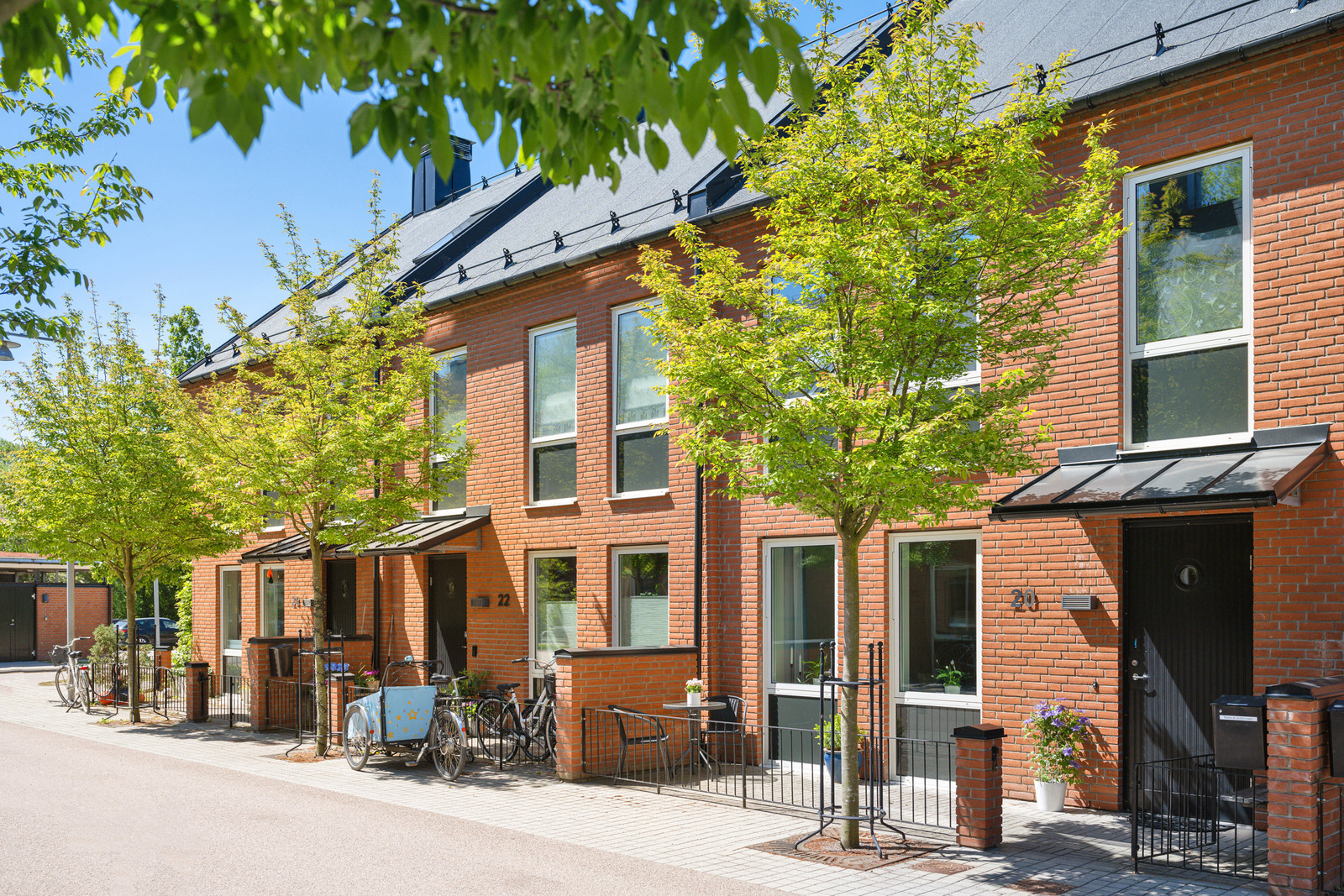Modernt radhus med västerträdgård i populärt och lugnt bostadsområde