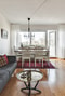 Vardagsrummet är ljust och luftigt med plats för soffgrupp och matbord. Här nås balkongen i soligt västerläge med ljuvlig utsikt mot parken. Vidare till köket, ett välplanerat kök med gott om arbetsytor och skåpsförvaring. Utrustat med spis, ugn, mikro, kyl/frys, fläkt och diskmaskin. Plats för ett matbord för fyra personer med ljuvlig utsikt mot parken.