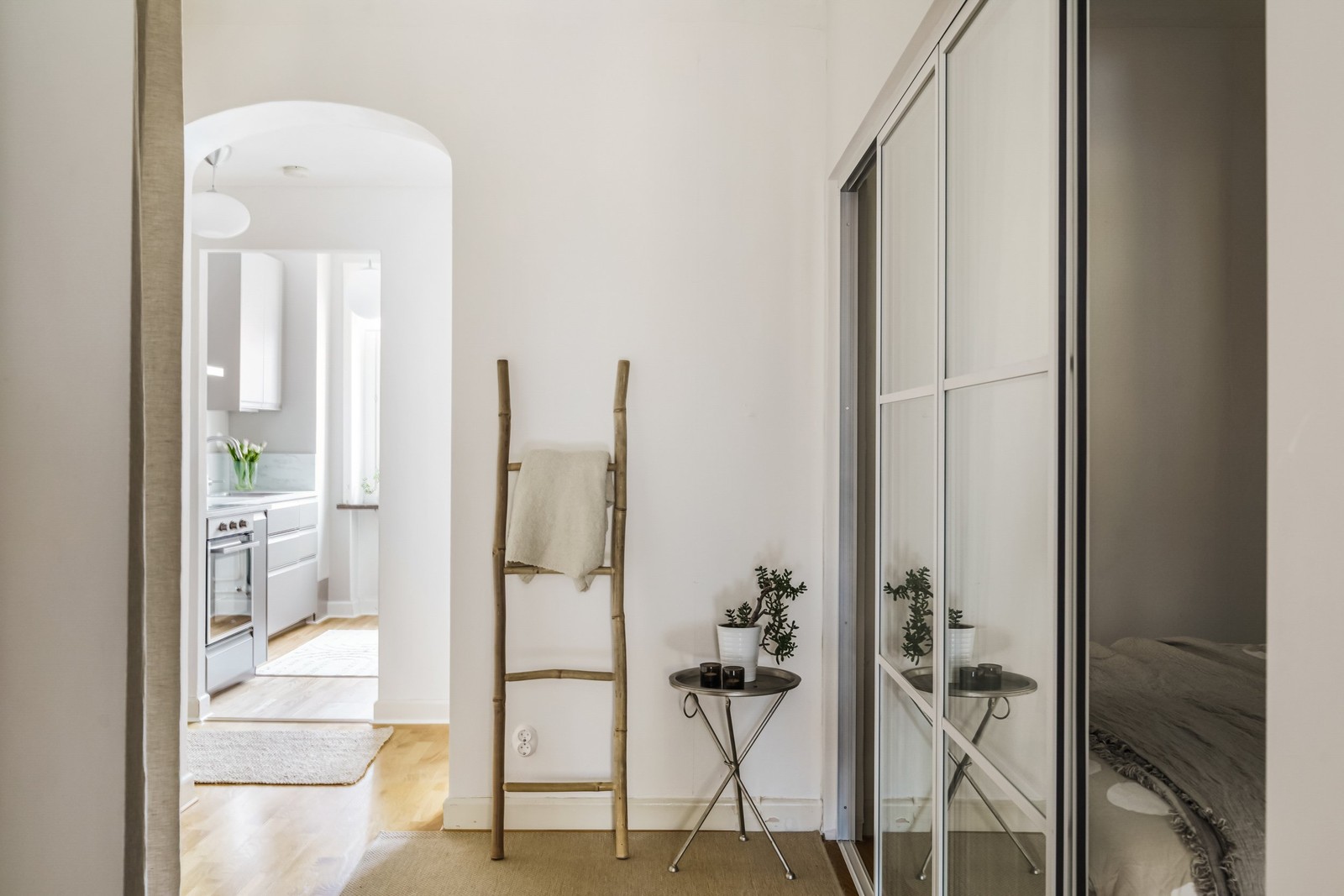 Välkommen upp till andra våningen och denna ljusa och charmiga bostad med generös takhöjd och vackra originaldetaljer. Redan i hallen möts du av ett fint parkettgolv som fortsätter in i det luftiga vardagsrummet. De ljusa väggarna och stora fönsterpartierna skapar en härlig rymd och en inbjudande atmosfär ut mot den lummiga innergården. Här ges möjlighet till både soffgrupp och matsalsbord.