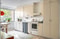 Från hallen tar du dig vidare till köket, som är i originalutförande med en härlig gul ton. Köket erbjuder generöst med förvaring och har dessutom plats för både matbord och vitrinskåp.