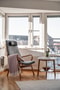 En riktig pärla i lägenheten är den inglasade balkongen som förlänger säsongen och gör det möjligt att njuta av utomhuslivet året runt, oavsett väder.