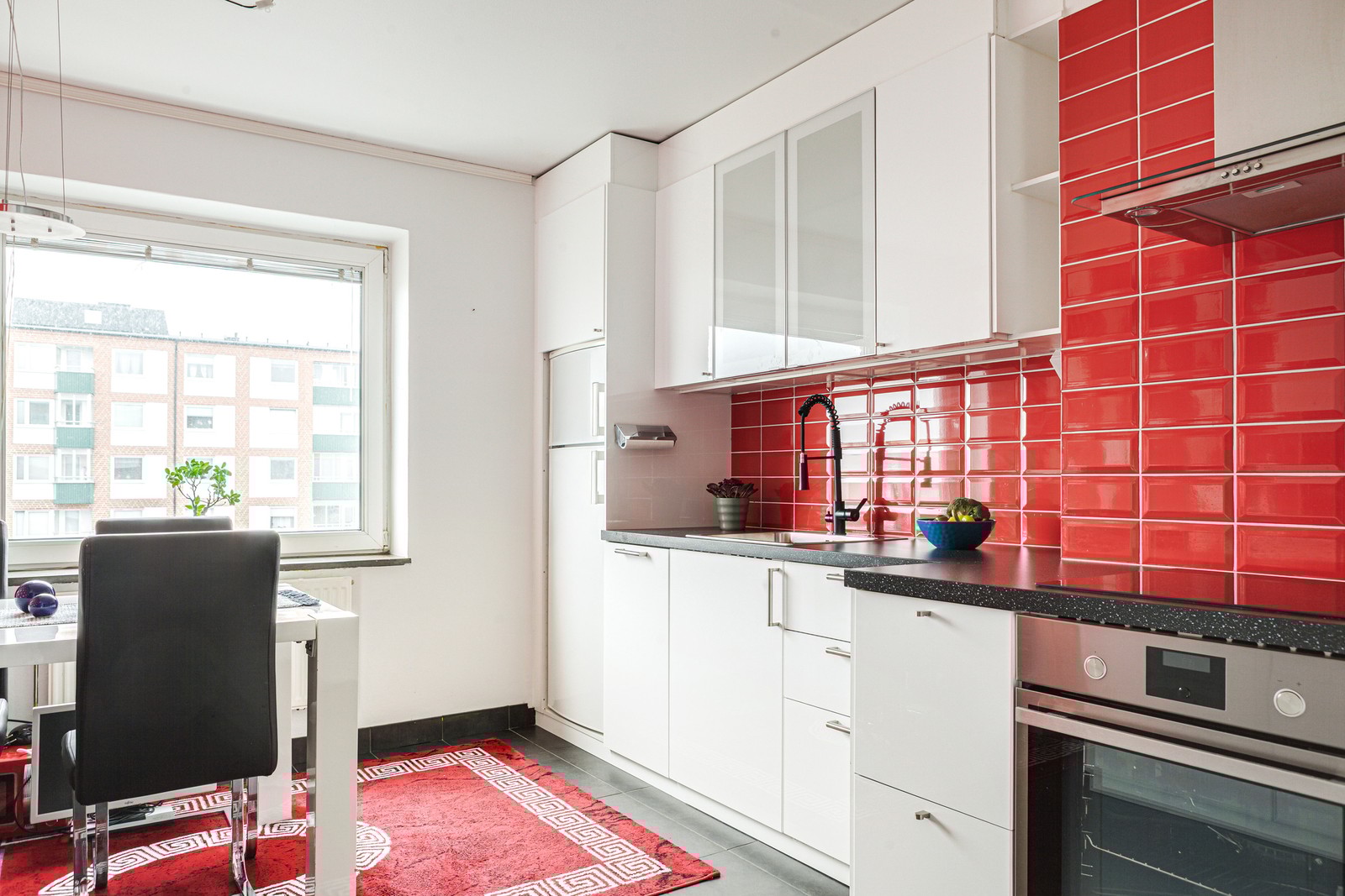 Välkommen till ett trivsamt och välplanerat hem med genomgående ljusa ytor, moderna materialval och en inbjudande känsla. Bostaden erbjuder en fin kombination av funktion och stil med både klinker- och laminatgolv samt smakfullt målade väggar i vitt och grått, kompletterade av fondväggar som tillför karaktär. Generöst ljusinsläpp bidrar till den ljusa och luftiga atmosfären. Det renoverade köket från 2018 bjuder på ett tidlöst uttryck med vita luckor, svartmönstrad bänkskiva och rött kakel som skapar en levande kontrast. Här finns gott om utrymme för matlagning, förvaring och en matplats för 4–6 personer. Badrummet är fräscht och helkaklat i vitt, med praktisk utrustning som gör vardagen enkel och bekväm. Bostaden rymmer både sociala ytor och privata delar, med plats för såväl avkoppling som förvaring. Den mysiga balkongen i österläge bjuder på härligt morgonljus, perfekt för en kopp kaffe i solen.