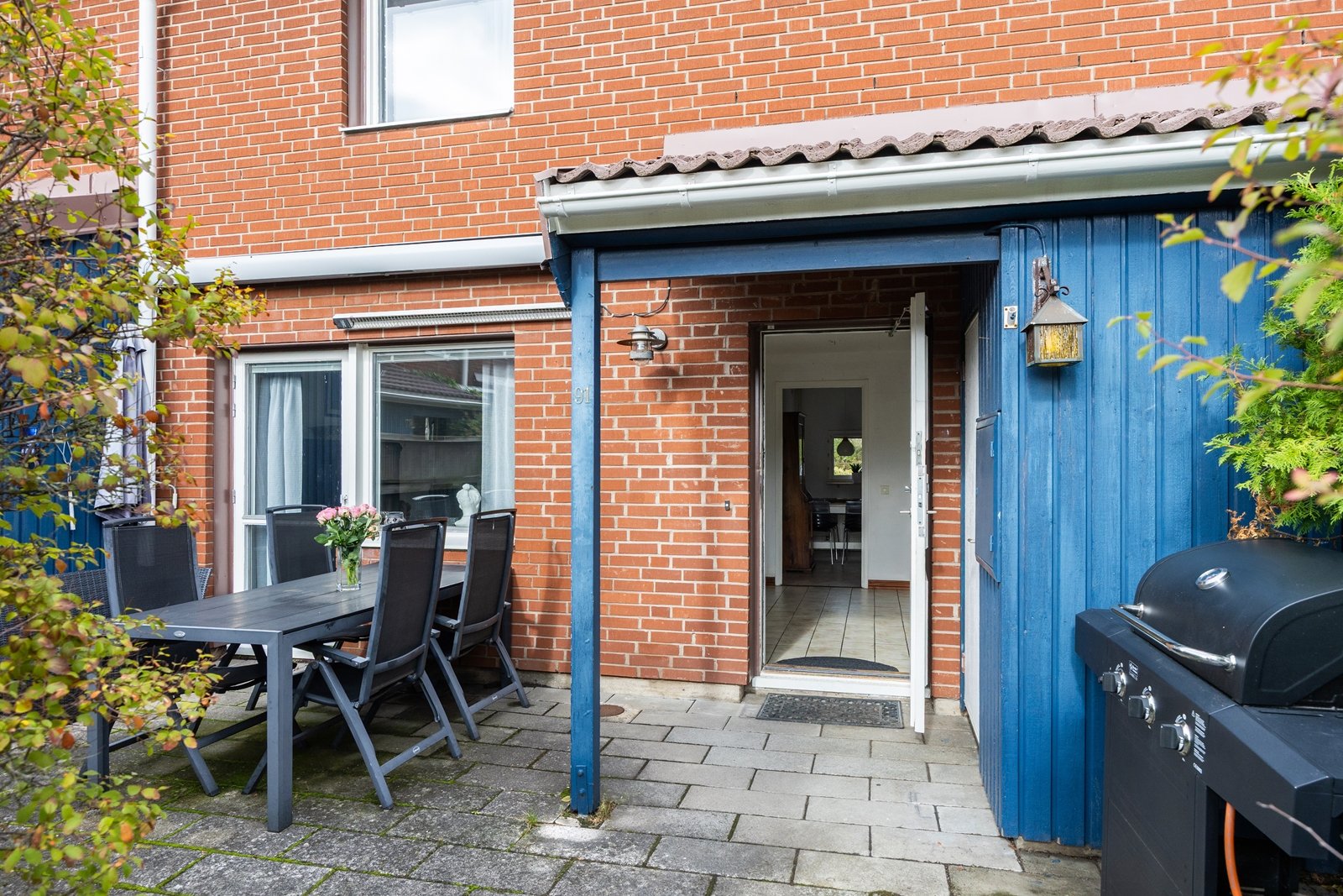Välplanerat 2 plans radhus med två uteplatser.