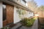 Den stora villan vänder sin vitputsade gavel under ljust tegeltak, ut mot gatan. Huset ligger långt in på tomten – grönska, vita träplank och en lerslammad tegelmur begränsar insynen till framsidans poolområde och det långa trädäcket.