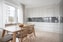 Den öppna planlösningen mot köket skapar naturliga sociala ytor – perfekt för både vardagsliv och fest. Ljusa väggar och vitbetsad ekparkett förstärker den moderna och inbjudande atmosfären.