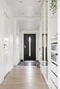 Redan i entrén möts du av en välkomnande och genomtänkt hall med slitstarkt klinkergolv, vitmålade väggar och infällda spotlights som ger ett mjukt och behagligt ljus. Här finns praktisk avhängning för hela familjen. Hallen övergår vidare i ett ljust ekparkettgolv och generös garderobsförvaring i vitt från IKEA med spegelförsedda dörrar som förstärker rymden. En stilren och funktionell entré som sätter tonen för resten av hemmet.