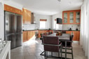 Kök: Stort och socialt kök med inredning från exklusiva Scavolini Kök, inredning i körsbär och bänkskivor av massiv granitsten. Stänkskydd av ljust kakel ovan köksbänk. Köket är komplett utrustat med fullstor kyl och frys (LG 2024), diskmaskin (Smeg), inbyggnadsugn och micro samt spisfläkt. Matplatsen i köket har öppen planlösning mot vardagsrummet. Ett stort matbord för stora sällskap bjuder in till långa middagar. På golvet ligger klinkergolv och från köket finns utgång till altan under tak med klinkergolv och västerläge.