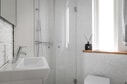 WC: WC/Dusch med mosaikklädda väggar och mosaik på golvet. WC-stol, tvättställ med kommod samt duschplats med vikbara duschdörrar. Infällda spotts i taket och golvvärme.