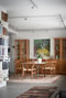 Centralt och socialt kök med formren interiör i helvitt, väggytor av turkos mosaik och bänkskivor av trä. Övriga väggar är målade i vitt. Kökets placering är både något avskild i en nisch och öppen mot matplatsen.