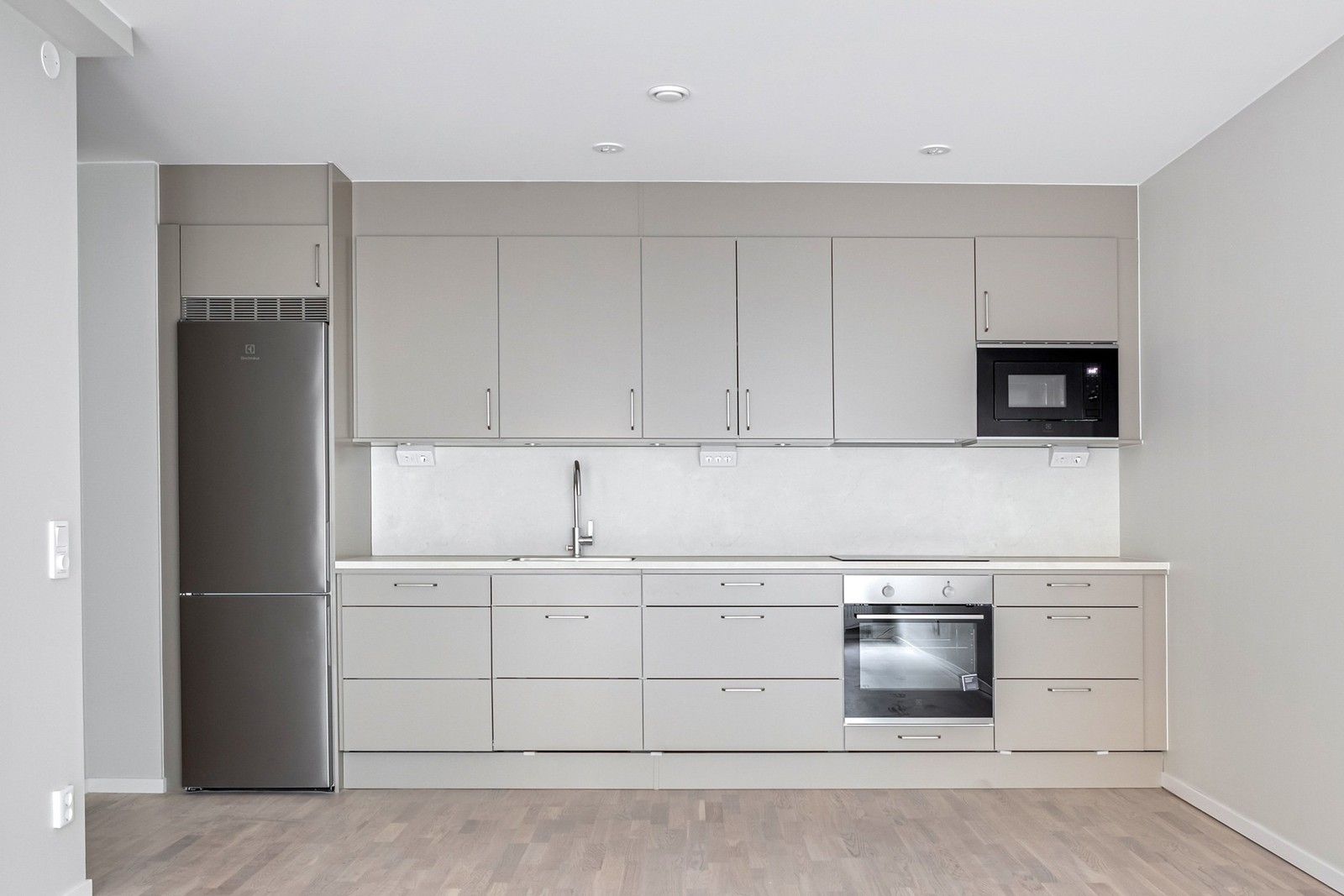 Ytterst välplanerad tvåa på 7:e våningen med balkong, stilsäkra materialval och bra förvaring. Njut av ett fullutrustat och kvalitativt kök i beige, generösa sällskapsytor och en stor och härlig balkong. Sovrummet erbjuder skjutdörrsgarderober och plats för dubbelsäng. Det stilrena badrummet är utrustat med dusch, handfat med kommod, spegel samt tvättmaskin och torktumlare.
