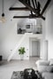 Bostadens vardagsrum är beläget på ljus hörna med fönster i två väderstreck. Vardagsrummet stoltserar med karaktäristiska takbjälkar, vackra fönster och en fascinerade takhöjd där den högsta punkten når 6 meter. Här finns det gott om plats för en rejäl soffgrupp, mediamöbler och läshörna. Väggarna är vitmålade.