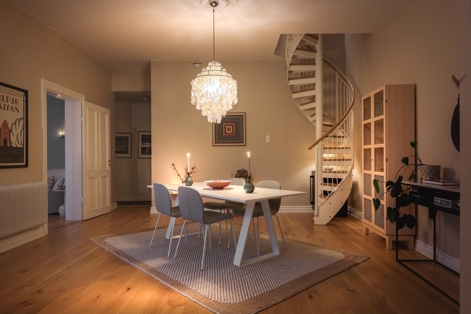 Den anrika fastigheten på Stora Nygatan 25 genomgick för några år sedan en varsam och genomtänkt ombyggnation. Med respekt för historien förädlades ”palatset” från tidigt 1900-tal, där arvet från svunna tider togs tillvara och förvaltades vidare. Högt i tak, fiskbensparkett samt smides- och stenbalkonger samspelar med förtrollande salgonger och vacker stuckatur. Dessa klassiska attribut har sedan några år tillbaka kombinerats med nyproduktionens alla bekvämligheter, i ett cityläge som är näst intill omöjligt att överträffa.