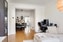 Vidare in i bostaden finns en praktiskt möblerbar halva som idag används som matplats. Här ligger vacker fiskbensparkett som följer oss vidare in i vardagsrummet där ljuset flödar in. I sovrummet finns plats för en dubbelsäng samt garderober.