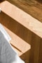 Vidare från hallen kommer vi in i halvan som används som sovrum. Här finns plats för dubbelsäng. Fiskbensparkett och ljusa väggar.