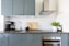 Rakt fram ligger det stilfulla IKEA-köket från 2018 med turkosa köksluckor, slitstark laminatbänkskiva och vitt kakel som elegant stänkskydd. Här finns plats för matbord och fyra sittplatser. Köket är utrustat med spishäll, varmluftsugn, kyl/frys samt effektiv kolfilterfläkt.