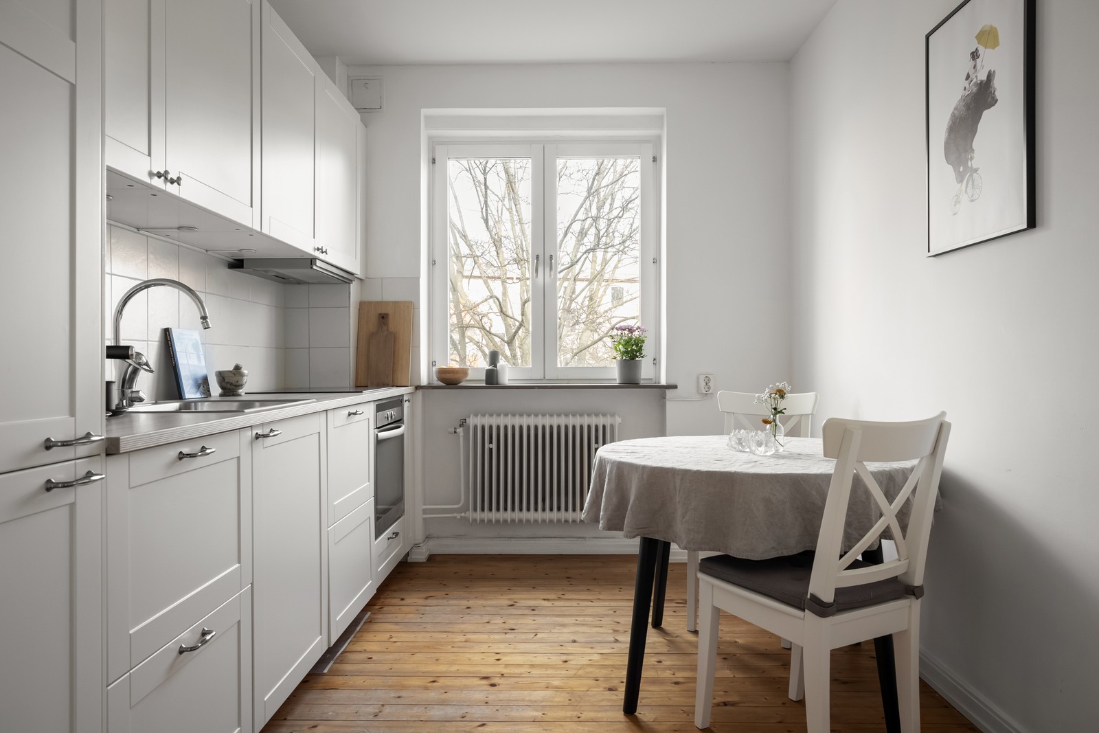 Kvadratsmart med separat kök och sovalkov med plats för dubbelsäng.