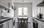 Till höger om hallen ligger bostadens stilrena kök som vetter mot den parkliknande och lugna innergården. Modernt kök med vit köksinredning, bänkskiva i trä och fint kakel baktill. Bra arbetsyta erbjuds på båda sidor av köket och maskinparken är komplett. Denna består av spis, ugn, fläkt, diskmaskin, tvättmaskin, kyl och frys.