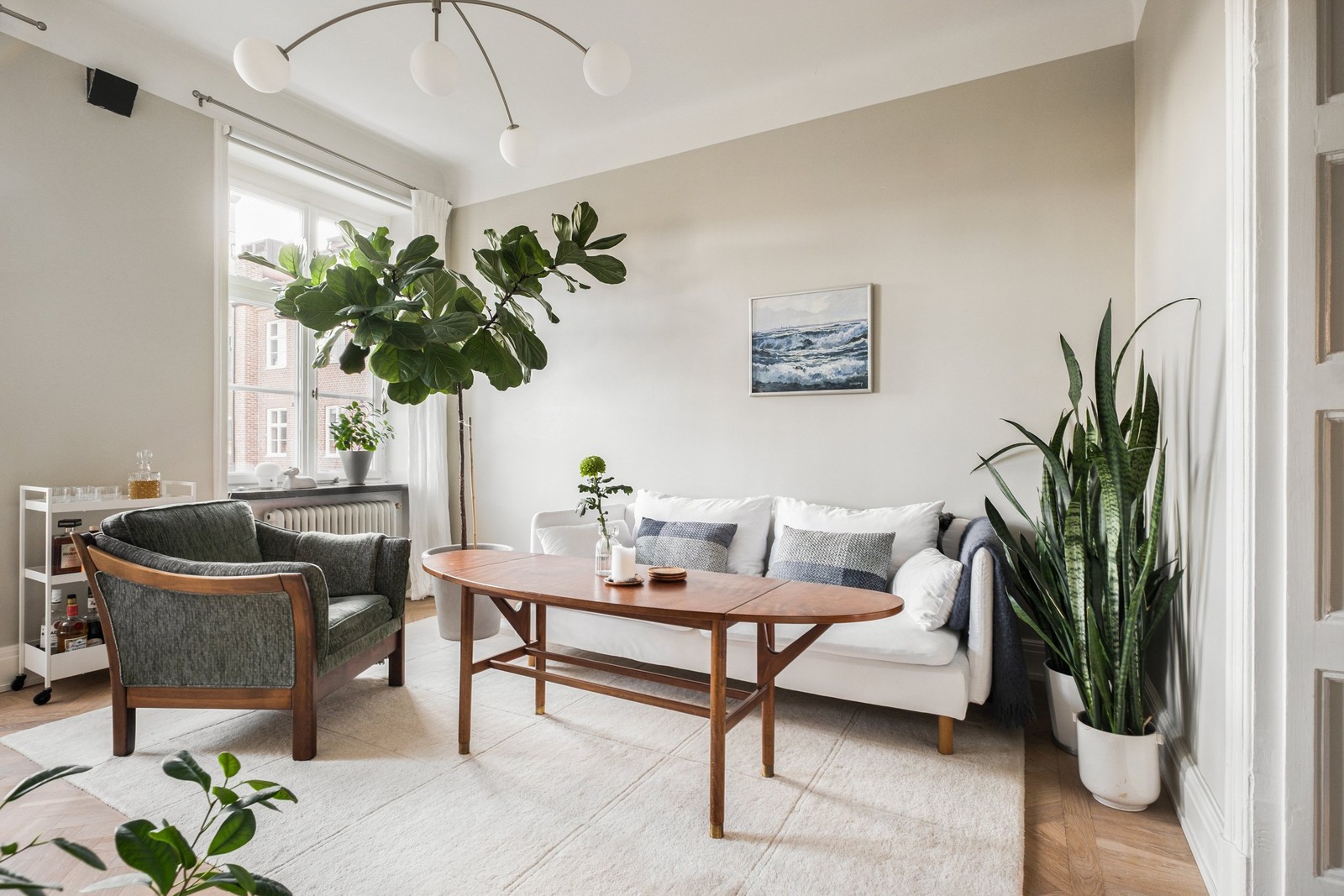 Stilfull tjugotalslägenhet med söderbalkong vid Davidshallstorg