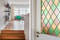 Från entrén nås den möblerbara hallen som öppnar upp lägenheten. Här finns både klädkammare och gästtoalett. På golvet ligger fiskbensparkett, väggarna är målade i vitt.