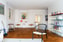 Kök från Ballingslöv som har renoverades med gråa köksluckor. Mycket goda förvaringsmöjligheter och bra arbetsytor på den formgjutna rostfria bänkskivan som belyses av spotlights. Plats för stort matbord framför fönster som vetter ut mot innergården. På golvet ligger fiskbensparkett, väggarna är målade i vitt.