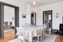 Till höger om hallen kommer du in i den sociala avdelningen med sällskapsrum och matsal i anslutning. Båda rummen pryds av en vacker fiskbensparkett i originalutförande och flera andra fina tjugotalsdetaljer såsom takrosetter, stuckaturer, profilerade listverk, spegelskjutdörrar och höga spröjsade fönster med djupa fönsternischer. I matsalen står en värmande braskamin som tillför stämning och värme. Härifrån har du en fin utsikt över parken. Flera av snickerierna är strukna i en grå ton vilket får de dekorativa detaljerna att framhävas vackert. Ett av rummen kan nyttjas som sovrum om man önskar två.