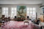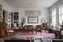 Med en häpnadsväckande rumsvolym på 9x6 meter öppnar sig sällskapsrummet som det första av fyra rum i fil till vänster med utsikt över Drottningtorget. Genom tre omfattande fönster med småspröjsat glas strömmar ljuset in från öster. Här råder det ingen tvekan om att huset byggdes under förra sekelskiftet och vilka stilideal som rådde då. Dekorationerna är många. Längs taket slingrar det sig stuckaturer med botaniska motiv och golvet pryds av en fiskbensmönstrad parkett i originalutförande. En vacker öppning med skjutdörrar och en inramning av infällda nischer med snickeribyggda hyllor i bambu leder vidare in mot matsalen.