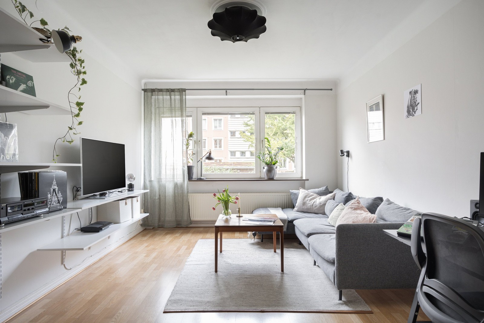 Välkommen till denna inflyttningsklara 30-talspärla, belägen på populära Ellstorp. Här finns en träffsäker mix av moderna och tidsenliga detaljer där du även välkomnas av en välskött fastighet och härlig gårdsmiljö. Bostadens genomgående planlösning och generösa takhöjd skapar ett trivsamt hem där rymd, ljus och charm är ledorden. Byggnadsåret gör sig påmint i form av vackra takrosetter, inbyggda skjutdörrar och väl tilltagen takhöjd. Bostaden är belägen en halv trappa upp i huset med en välplanerad planlösning med extra halva i vardagsrummet som passar perfekt för matplats eller kontorsdel. Det rymliga vardagsrummet öppnar upp för sociala sammankomster med ett fint ljusinsläpp och vacker utsikt över föreningens grönskande innergård. Det ljusa och fräscha köket inbjuder till både matlagning och trevliga stunder kring matbordet. Det rymliga sovrummet vetter mot en lugn innergård och gata och erbjuder gott om plats för en stor säng samt stor PAX-garderob som ingår i köpet. Badrummet är stilrent och modernt efter att ha totalrenoverats 2018 i samband med föreningens stambyte.