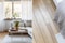 Stort rum med plats för både soffgruppen och matsalsbord. Här vilar ett fint skeppsgolv och väggarna är vitmålade. Härifrån nås balkongen.