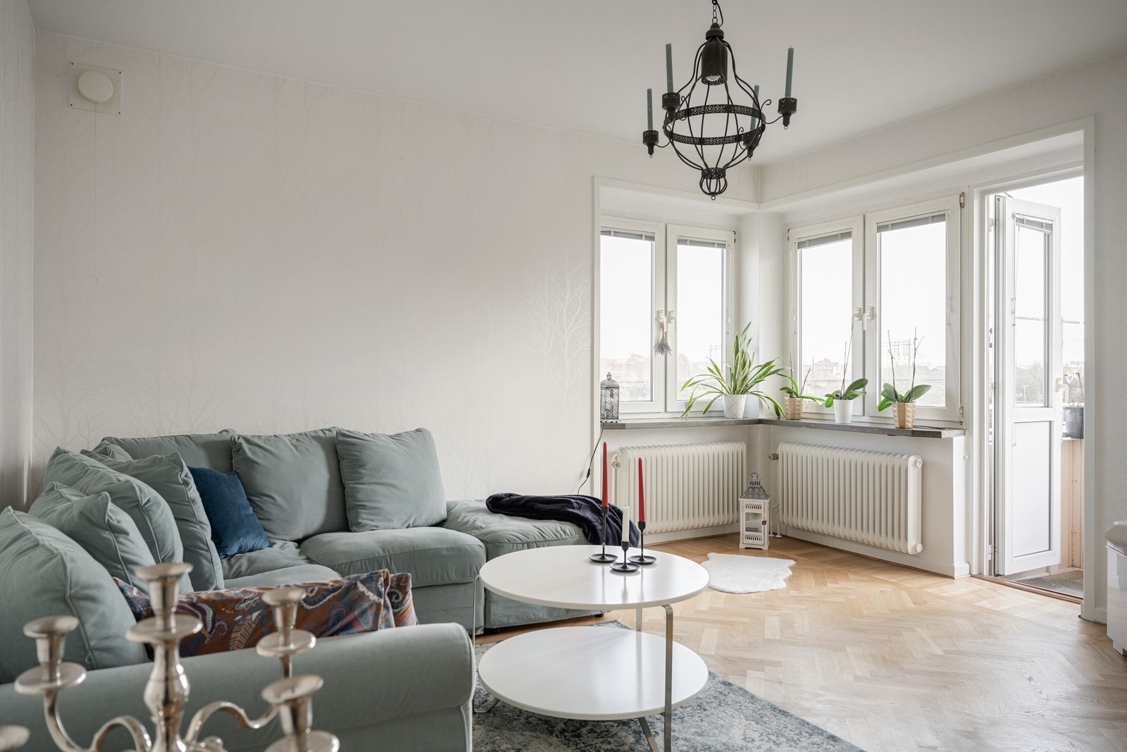 Inflyttningklar 3:a med balkong, fiskbensparkett, renoverat kök och helkaklat badrum.