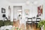 Tack vare ett genomgående ljusflöde känns vardagsrummet stort och luftigt. Lättmöblerade ytor med raka linjer som rymmer gott om plats för större matgrupp, soffmöblemang och TV-hörna. Utgång till balkong som vetter mot lummig innergård. Vitmålade väggar och fiskbensparkett.